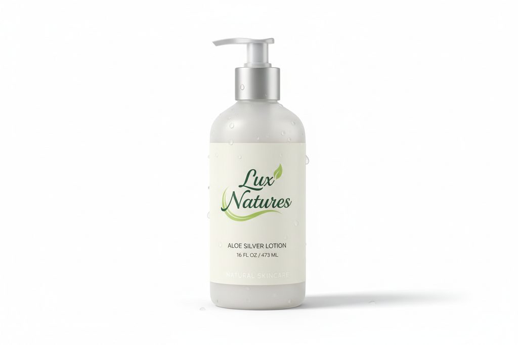 Aloe Silver Lotion Base is formulated to support and soothe troubled skin, including dryness, irritation, and minor rashes. While Lux Natures does not make medical claims, this lotion is for external use only. We encourage customers to research the benefits of the ingredients for their own needs.